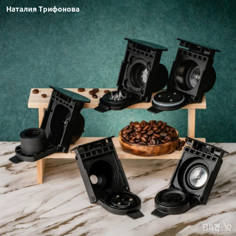 Поддържани системи: Dolce Gusto, Nespresso (LOR, Jacobs), Lavazza Blue, Tchibo Cafissimo, ESE 44 мм, мляно кафе;