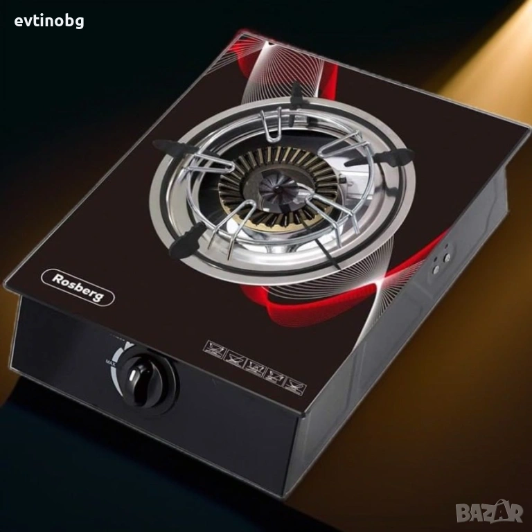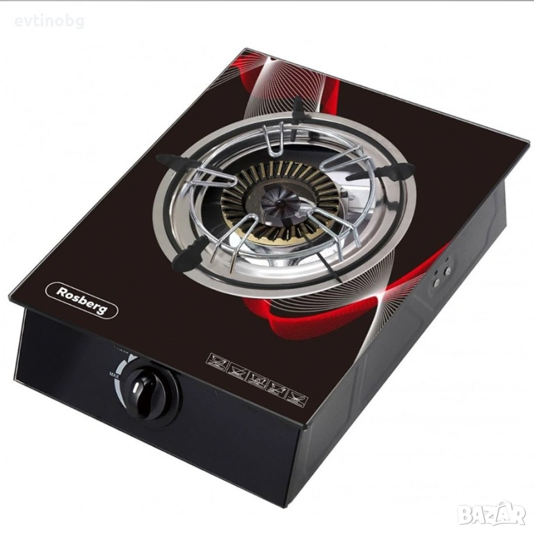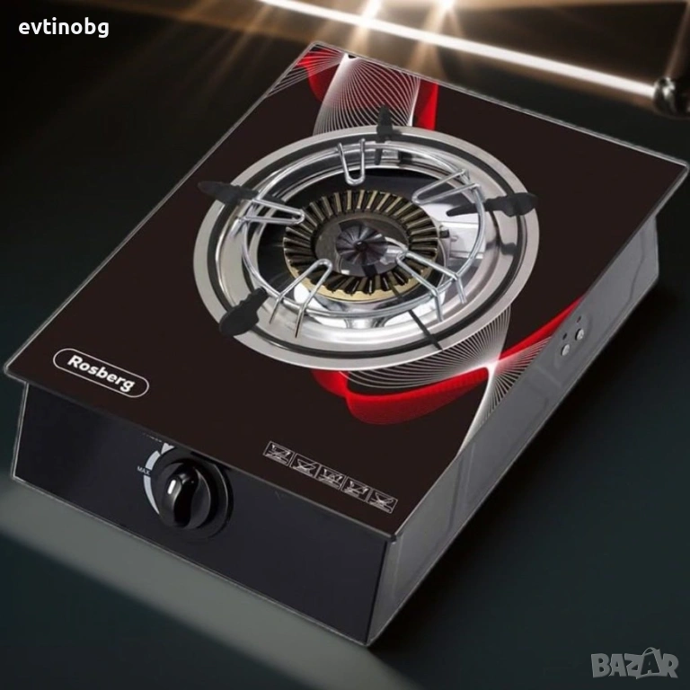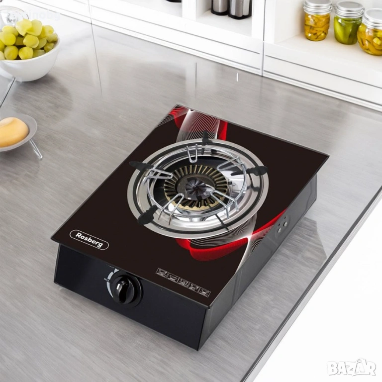 Котлон газов единичен Rosberg Premium , 30 mbar, Черен от закалено стъкло, Чугунена горелка, с две п