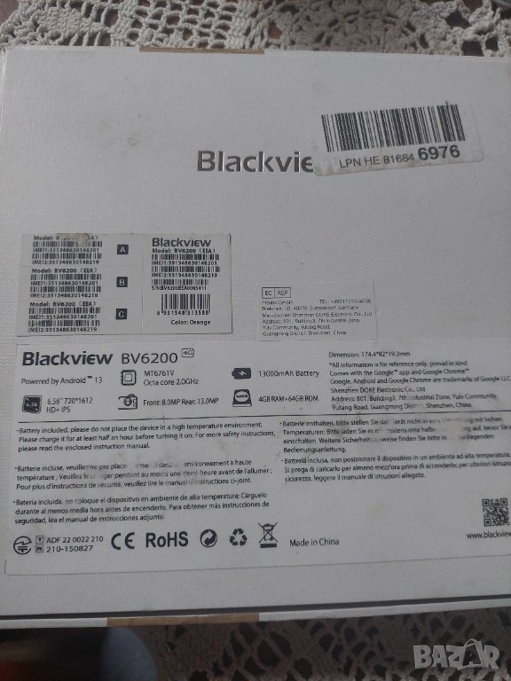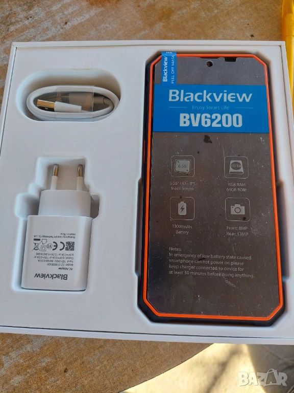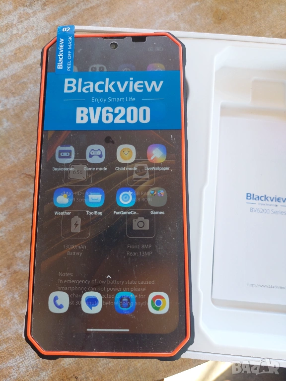 Мобилен телефон Blackview BV6200 Черен, 4G, IPS 6.56", Високоговорител 3W, 4+4GB RAM, 64GB ROM, Android 13, Helio A22, NFC, 13000mAh, 18W, Dual SIM.