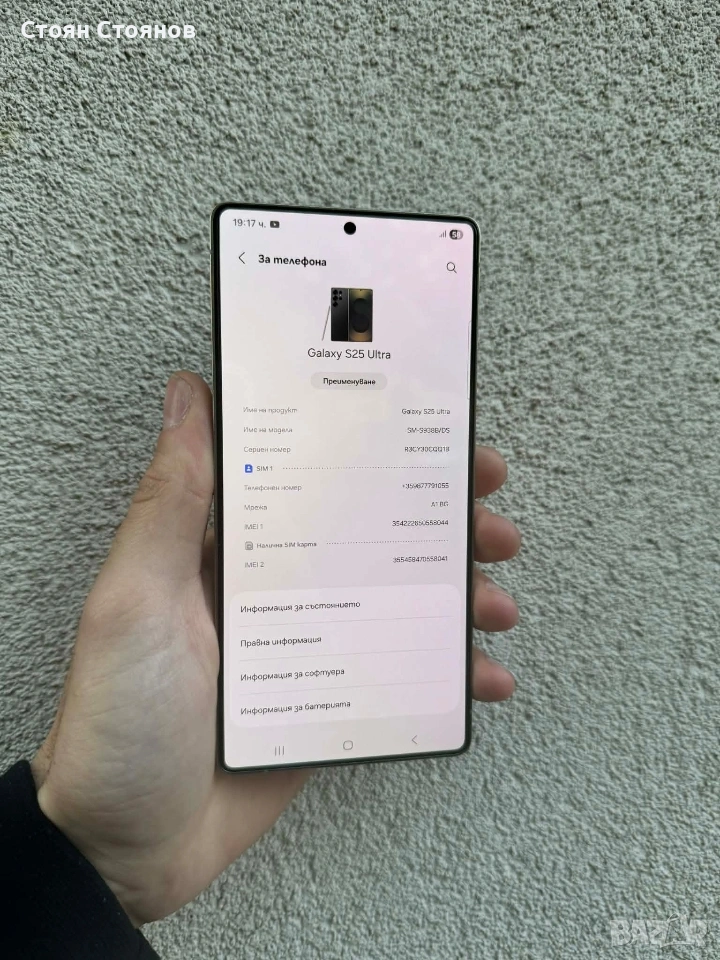 (При интерес, МОЛЯ обадете се) Възможен бартер / Гаранционен Samsung Galaxy S25 Ultra Titanium JatBlack /