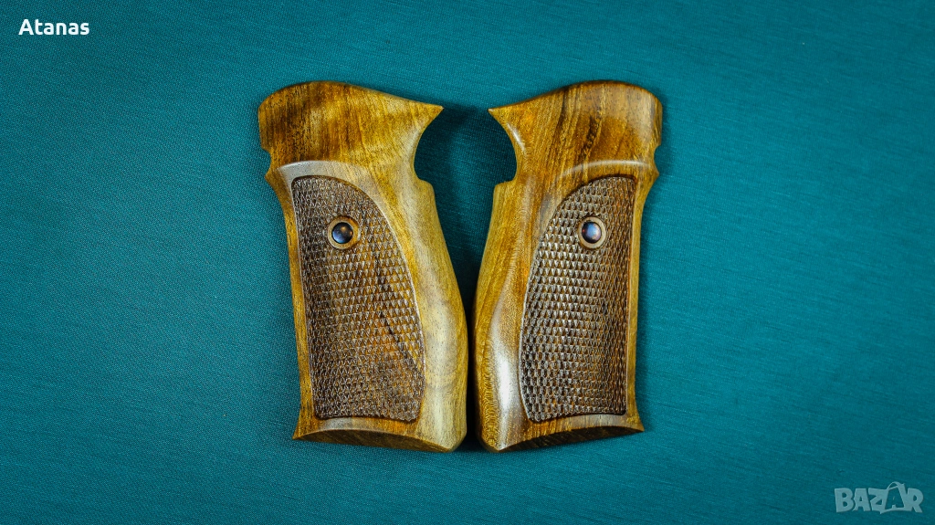 Два ръчно изработени ортопедични чирена от орех за TT-33 с подарък две удължаващи дъна за пълнител, които увеличават капацитета до 9 патрона. Чирените могат да бъдат изработени от друг материал по преценка на клиента. Позволяват персонализация! Монтират се с оригиналните винтове.