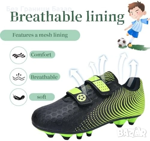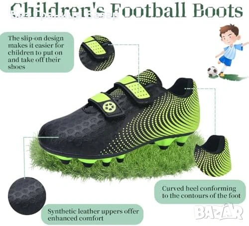 Нови Футболни обувки за деца дишащи стабилни за тренировки футбол с бутони за изкуствена трева 36 но