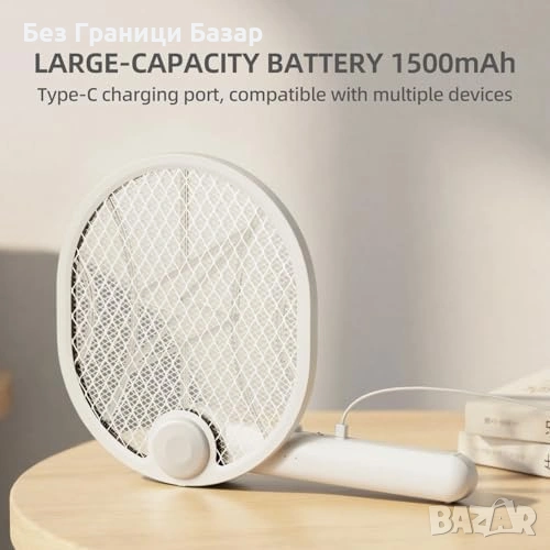 Нова Електрическа мухобойка 4000V USB-C акумулаторна сгъваема ракета за насекоми убиец