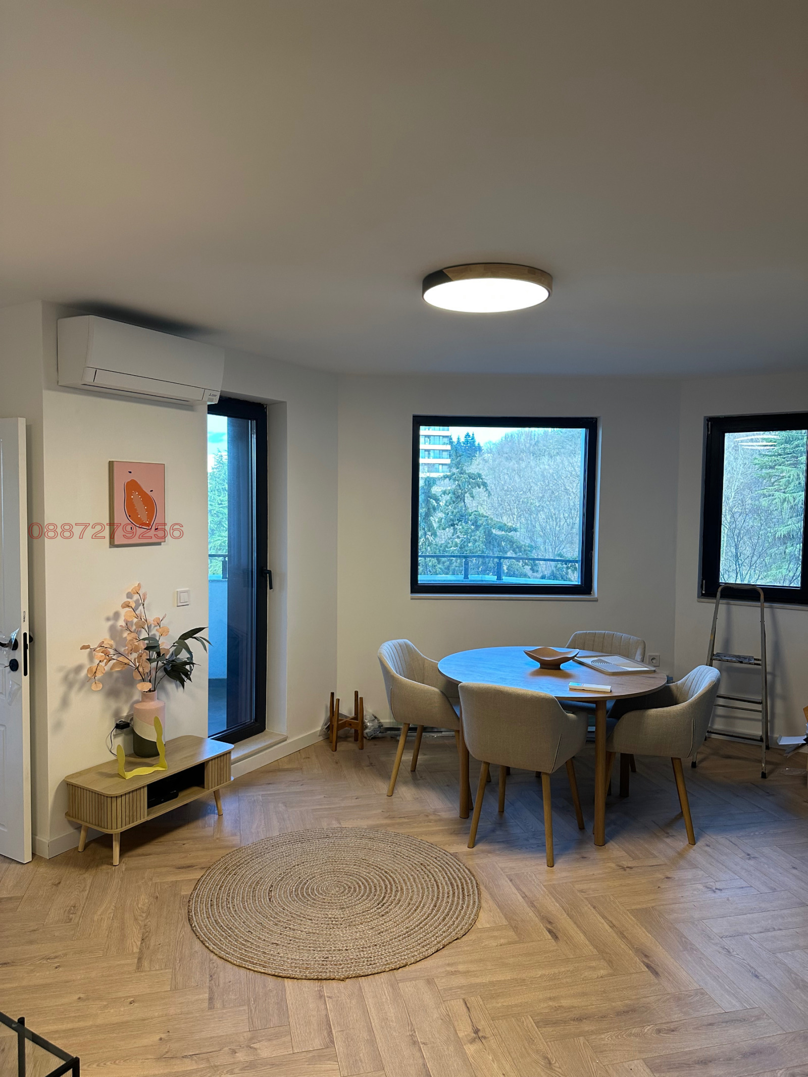 Жилището се отдава напълно обзаведено и оборудвано с всичко необходимо за едно съвременно домакинство: климатик от най-висок енергиен клас, Smart TV, съдомиялна машина, пералня със сушилня, фурна и котлони, микровълнова фурна, прахосмукачка и кафе машина. Кухнята е оборудвана с посуда и прибори.