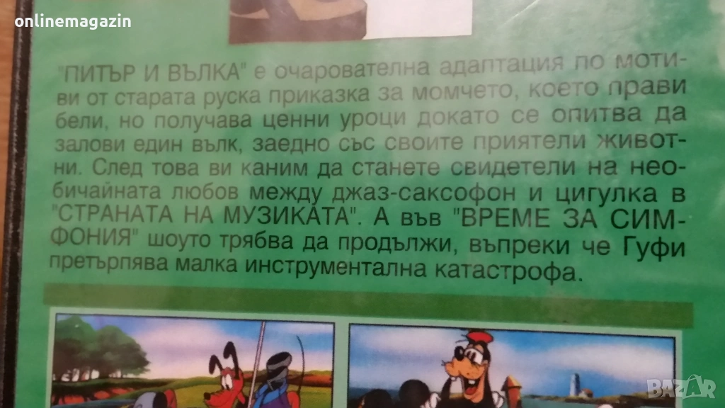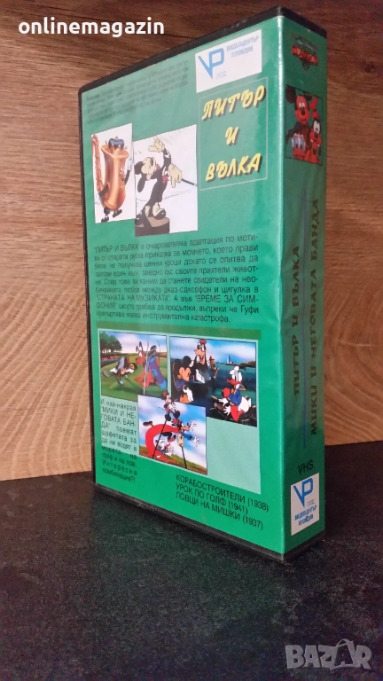 Продавам анимационна видеокасета "Питър и вълка - плюс Мики и неговата банда" . Касетата работи отлично и е озвучена на български език . Много запазени :кутия , обложка и касета . 18 снимки на обявата и 9 снимки на касетата в работещо състояние. Изпращам с Еконт, Спиди или лично предаване за град Бургас.