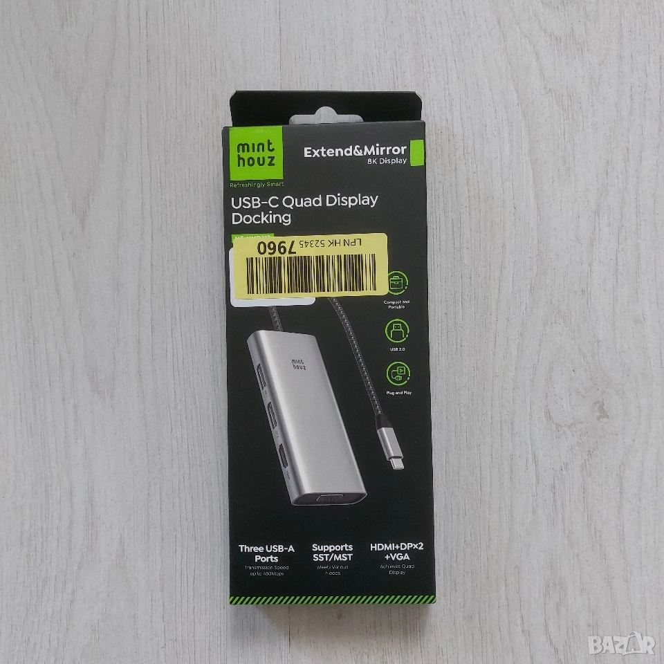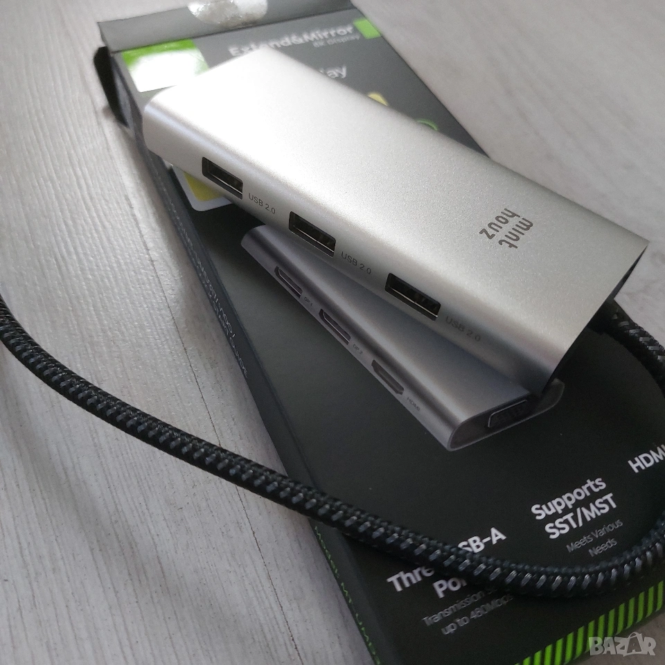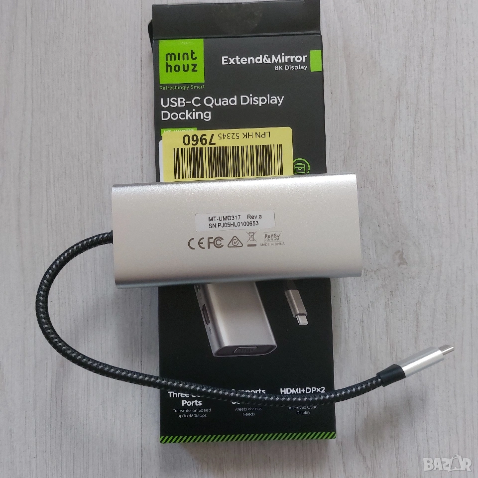 Продавам чисто нова, неизползвана докинг станция Minthouz, модел MT-UMD317. Изключително мощно и компактно устройство, което превръща един USB-C порт на вашия лаптоп в пълноценна работна станция с до 4 монитора едновременно.