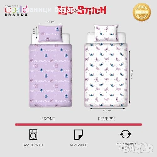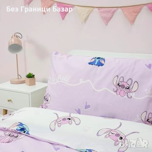 Нов двулицев спален комплект единичен с калъфка за детска стая с Disney Lilo Stitch Стич герой