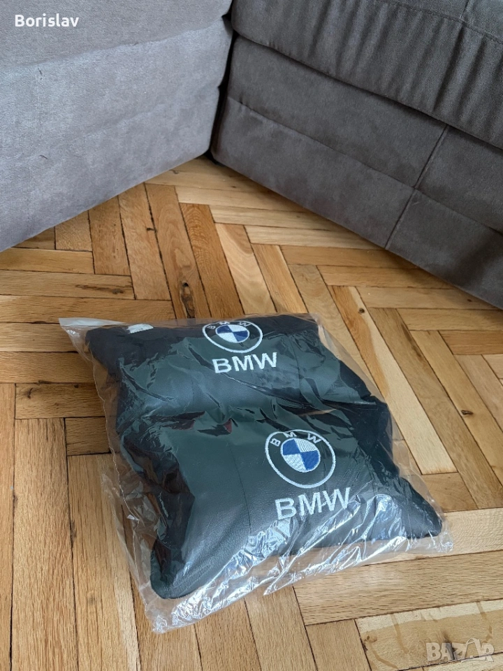 Нови възглавнички за кола с лого BMW. Меки и удобни, намаляват напрежението във врата при шофиране.
