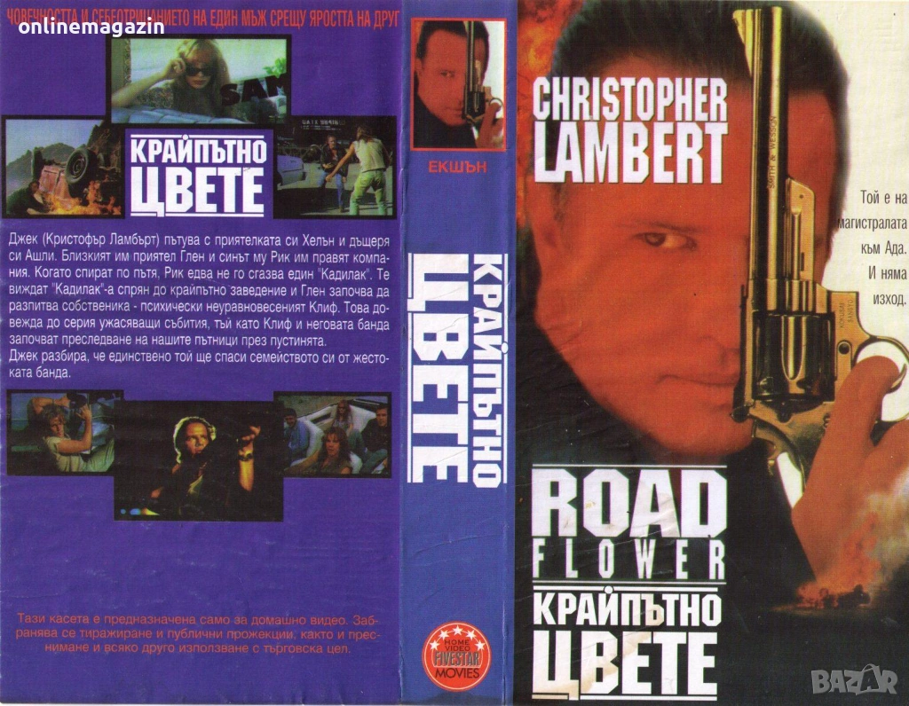 Продавам видеокасета " Крайпътно цвете " Екшън филм от 1994 година. Филмът е озвучен на български език от един мъжки и един женски глас . 6 снимки на касетата в работещо състояние. Изпращам касетата в черна кутия без обложка , по Еконт, Спиди или лично предаване за град Бургас.