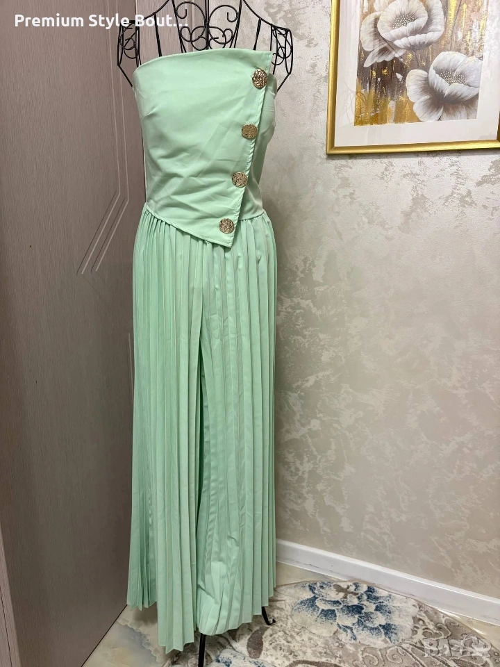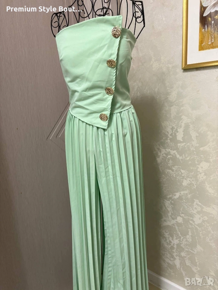 Гащеризон бюстие Ефектно декориран с обемни златисти копчета Еластичен на гърба Панталона е солей и придава допълнително раздвижване и комфорт Стандартен размер ( от С/М до Л) 26€