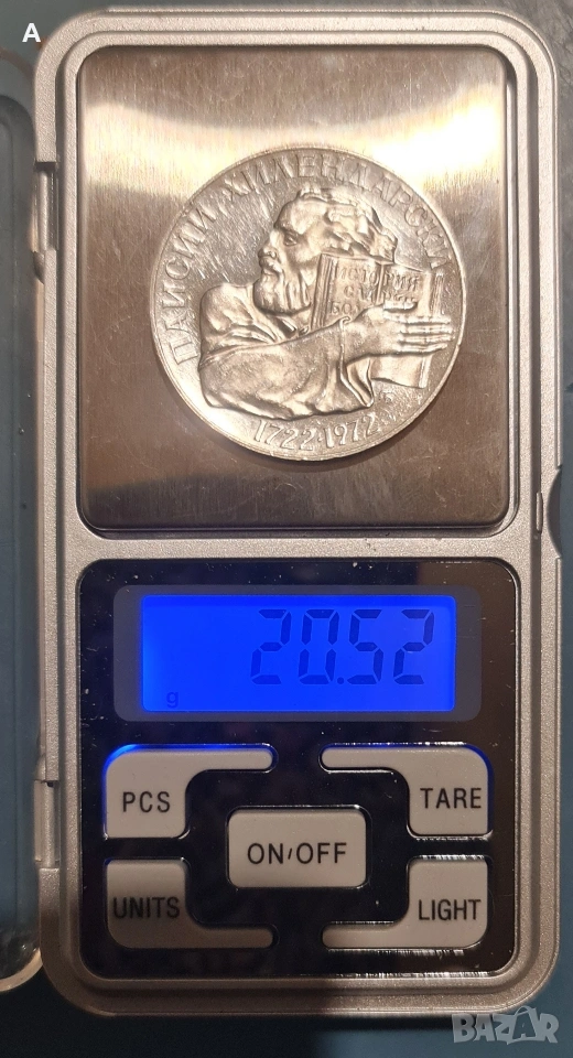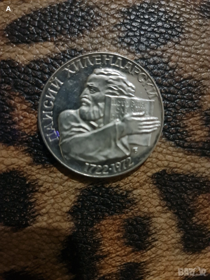 Българска сребърна юбилейна монета Паисий Хилендарски,номинал 5лева 1972г. → Обява 54101977