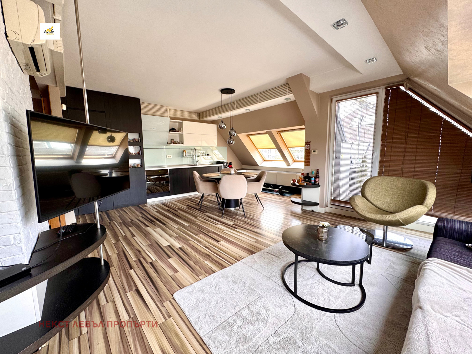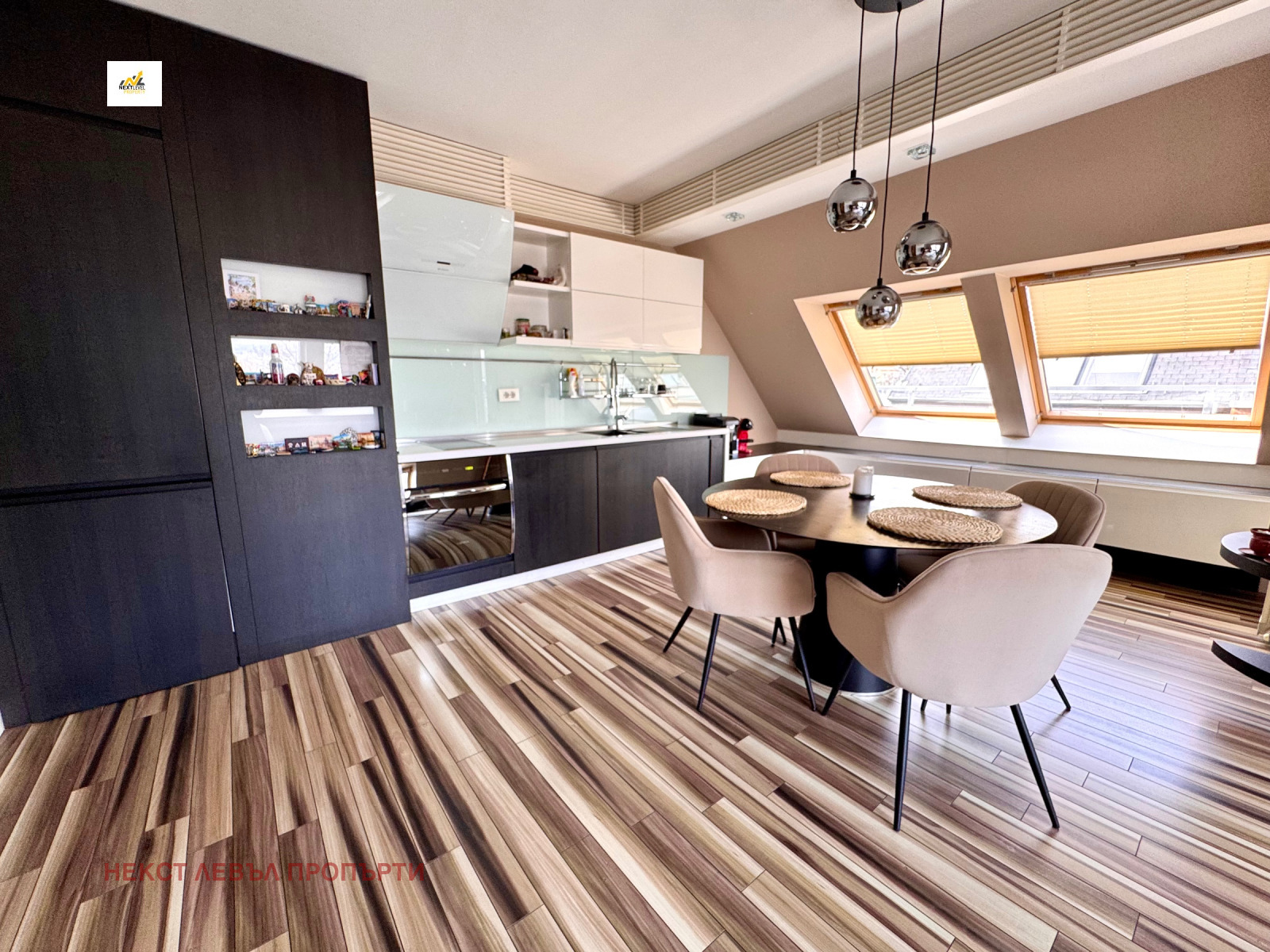 Апартаментът е обзаведен с най-висок клас мебели и електроуреди. Меката мебел е BoConcept.