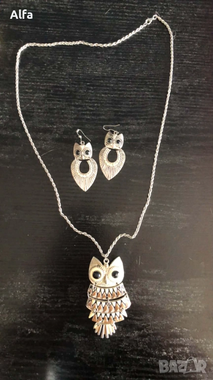 • Комплект бижута: Ефектно колие и обеци с детайлна изработка (материал: бижутерийна сплав, не е сребро). Перфектни за ежедневието или за подарък на любим човек.