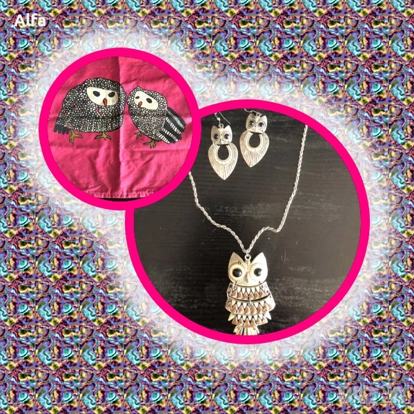 Търсиш уютен детайл за дома и ефектен завършек за визията си? Този сет с любимия мотив на бухалите е точно за теб!