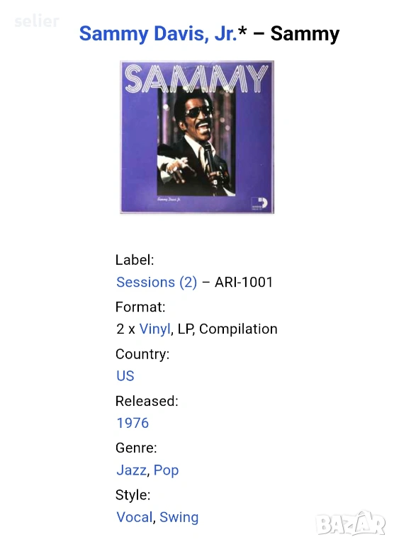 Sammy Davis, Jr. ‎– Sammy Двойна плоча Издание 🇺🇸 USA 1976г Стил:Jazz, Pop Vocal, Swing Състояние → Обява 54102119