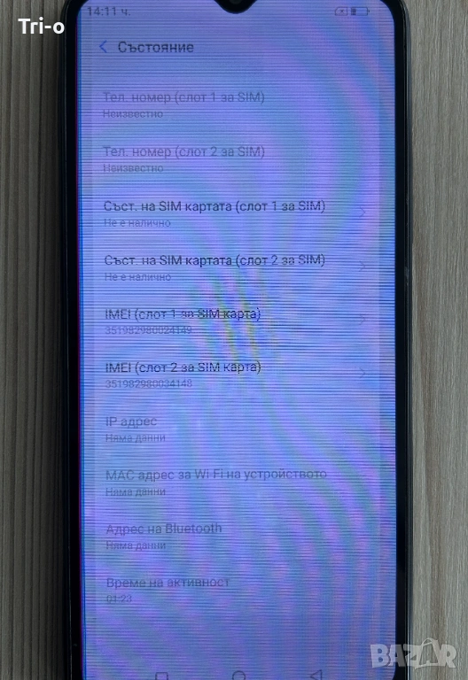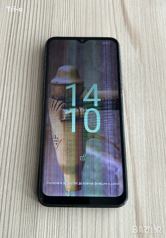 Дисплея е на черти, но си работи. Батерията държи малко явно е за смяна. Камерата се обръща наобратно. Но като цяло си работи, може да се ползва като телефон или да се браузва в интернет.