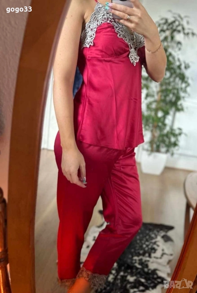 Цена: 27 евро Дамски сатениран комплект за спане от 5 части
