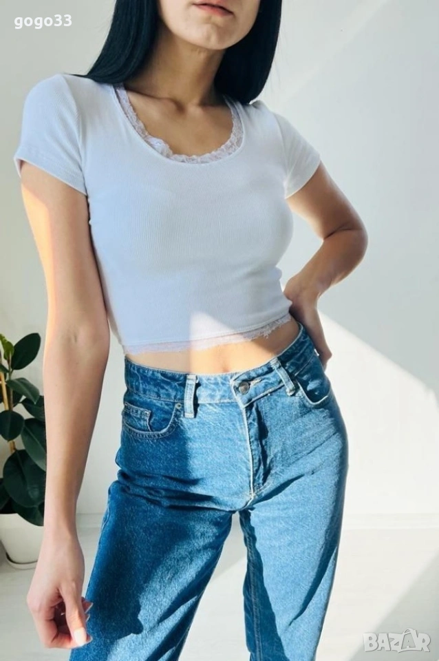 Къса дамска секси тениска с дантела на ръкавите / Цвят: бял, черен / Размер: С, М, Л Цена: 10 евро