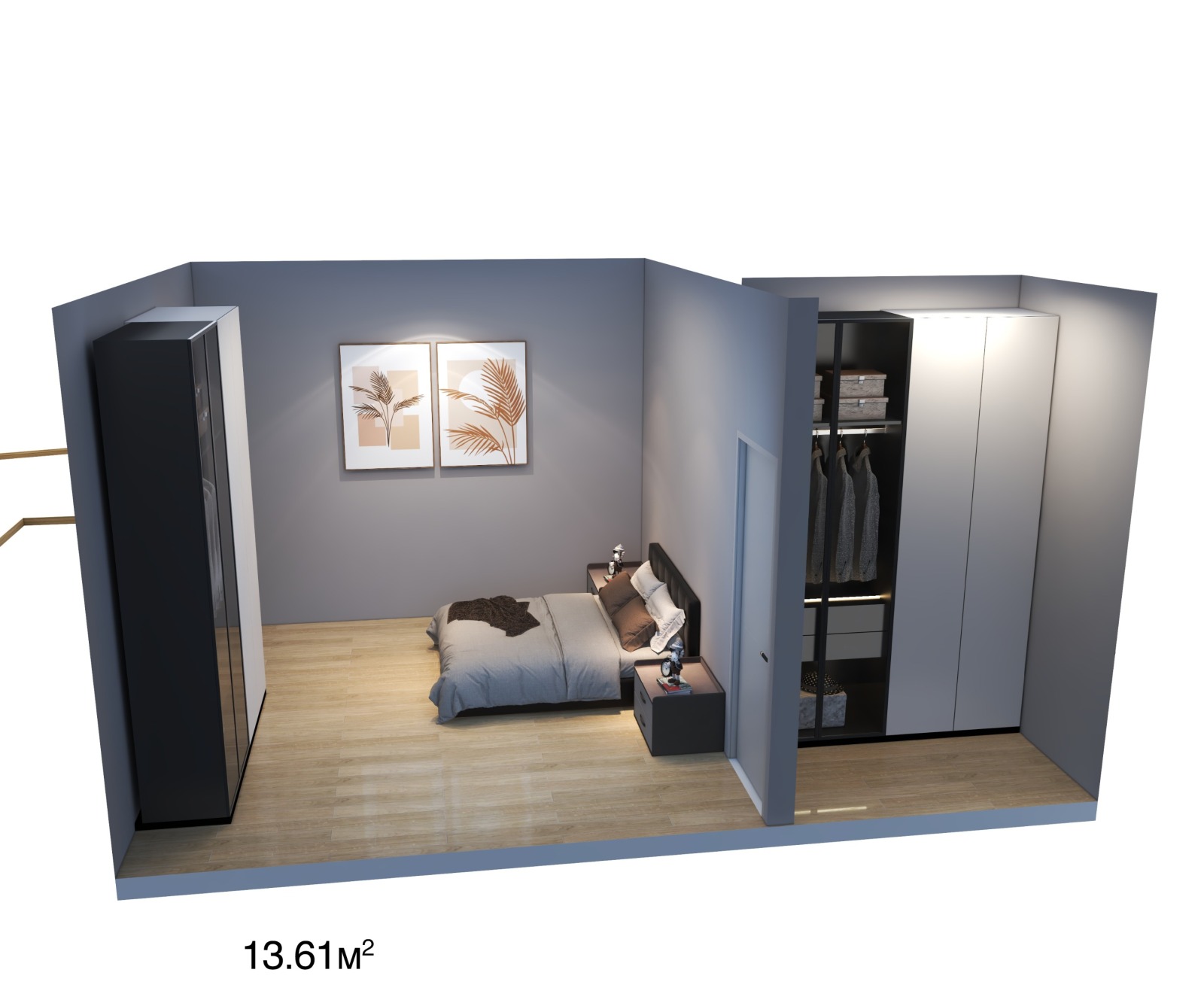 Представената 3D визуализация е в реалните размери на помещенията и показва примерно дизайнерско обзавеждане, което Ви дава ясна представа за потенциала на жилището.