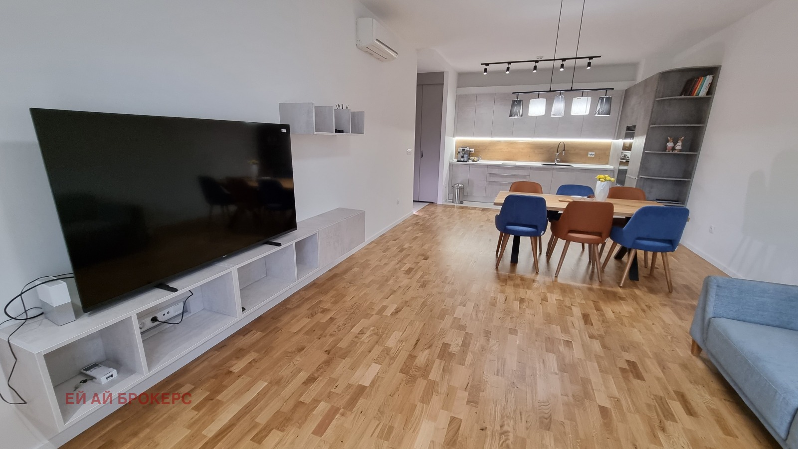 Апартаментът предлага просторна дневна с кухненски бокс и трапезария, две уютни спални, както и две бани с тоалетни, което гарантира удобство за цялото семейство.