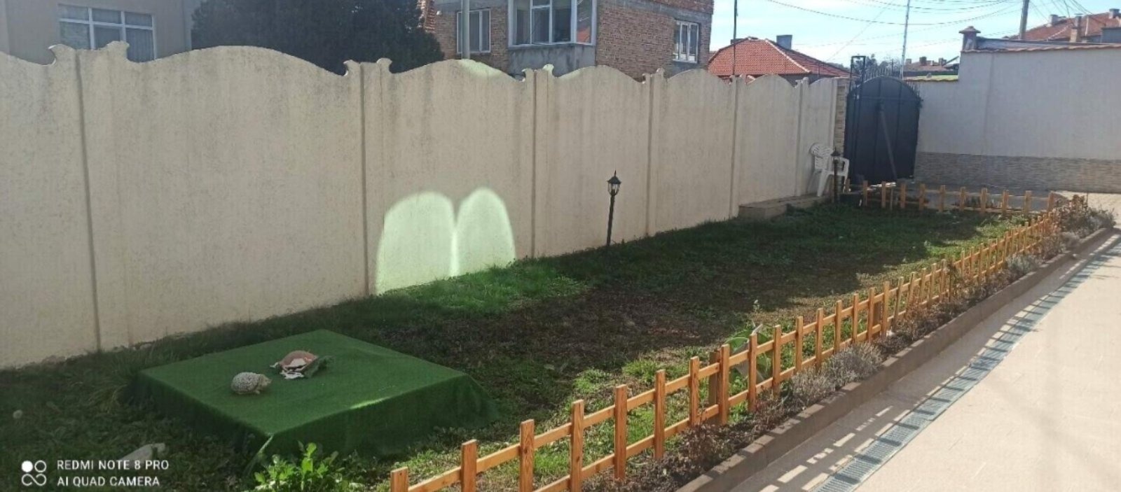 ✅ Двор: Свежа тревна площ с декоративна ограда, нови павета за паркиране и автоматична плъзгаща врата (4 м).
