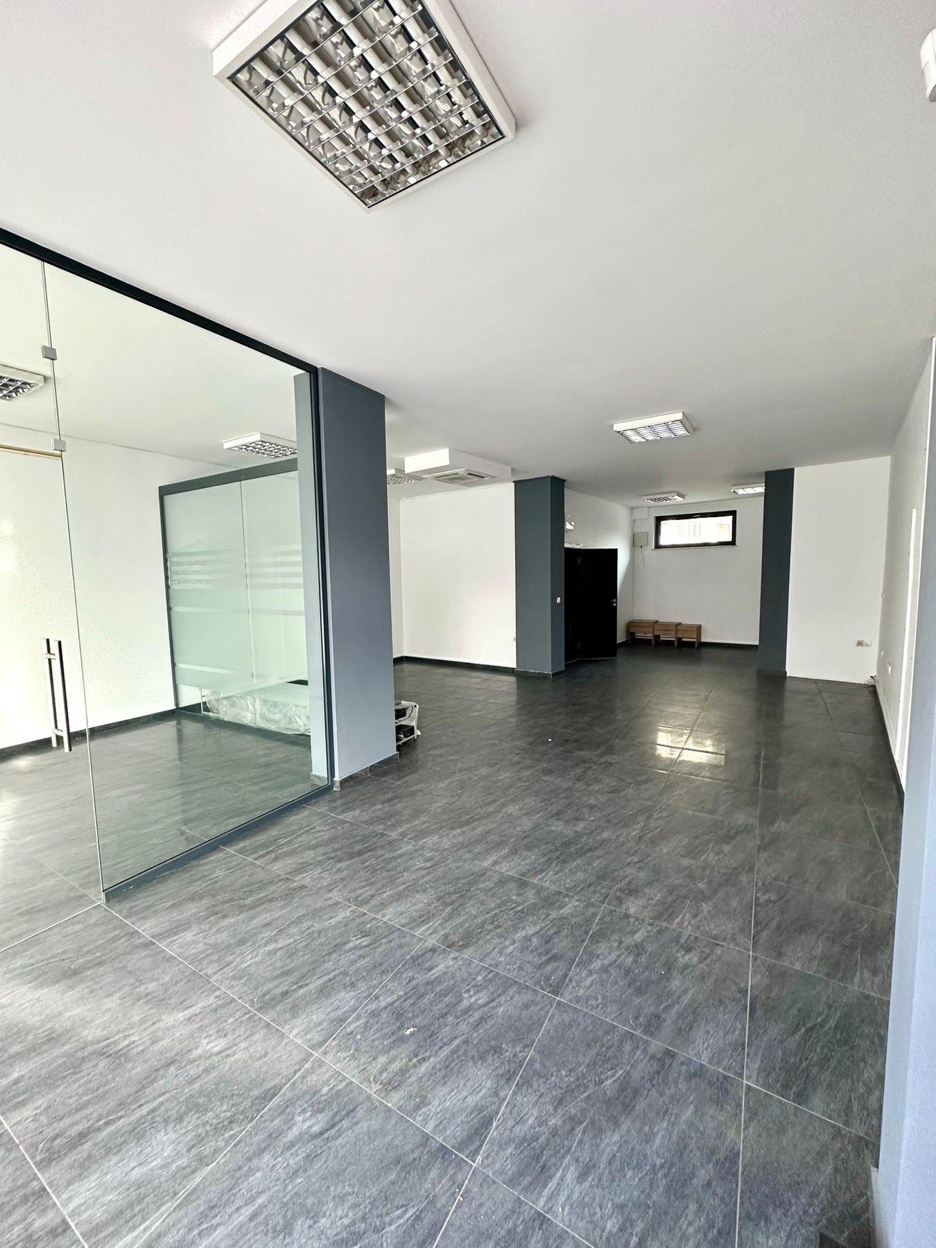 Помещението е на партерен етаж и разполага с площ 100кв.м. разгърната в следното разпределение: търговско помещение, офисна част и санитарен възел.