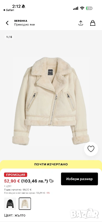 Продавам чисто ново преходно яке на Bershka в прекрасен кремав цвят (екрю). Якето е тип „double-faced“ – съчетание от мек еко велур отвън и пухкава подплата от изкуствена агнешка вълна (шерпа), която се вижда по яката, маншетите и долния подгъв.