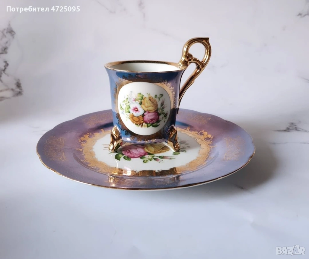 Японски колекционерски комплект от чаша и чинийка Ohashi China, често наричан „кабинетна чаша“. 1932г.