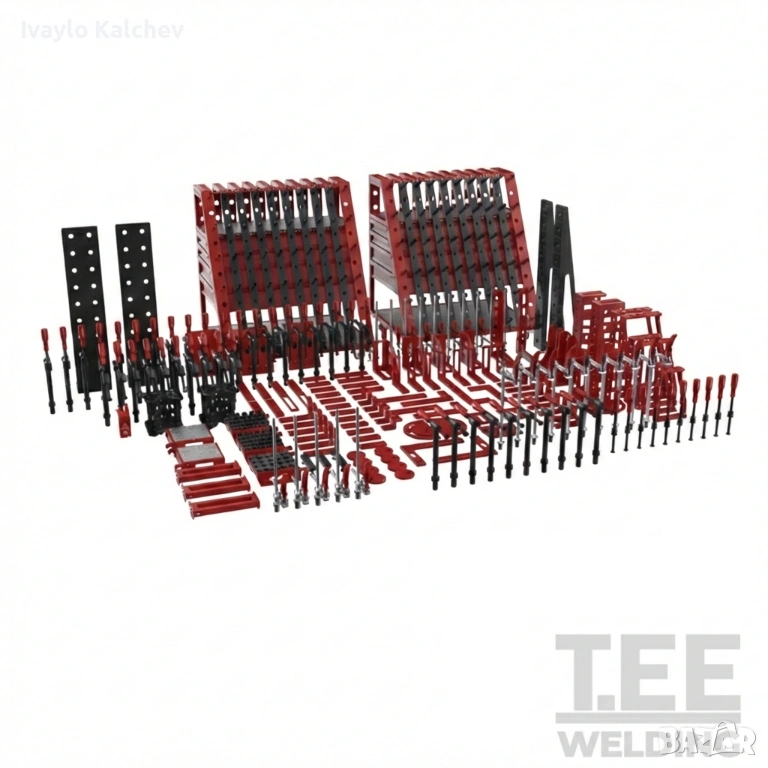 Комплектът е предназначен за работа върху заваръчни маси и позволява бързо, точно и стабилно фиксиране на различни по форма и размер детайли по време на заваряване и монтаж.