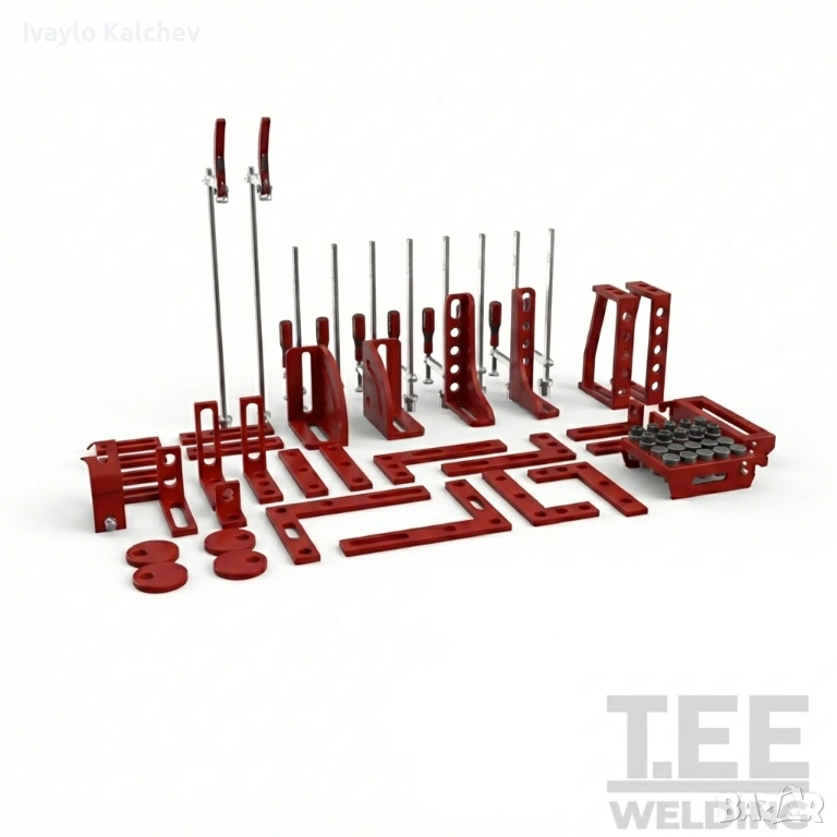 Комплектът е предназначен за работа върху заваръчни маси и осигурява стабилно и точно фиксиране на детайли при заваряване и монтаж.