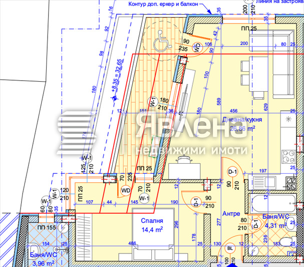 Жилището е разположено на 5, среден етаж и се състои от просторна дневна 27 кв.м., голяма спалня 14,5 кв.м. и хубава тераса пред двете стаи, баня с тоалет и коридор. Към апартамента има и прилежаща маза. Апартаментът е на етап пред Акт 15 и ще бъде завършен по БДС. Намира се на тиха и спокойна улица на на 10 мин пешеходно разстояние от Катедрален Храм на Варна и централната част на града. Сградата е проектирана по всички стандарти за модерно и устойчиво строителство от 21-ви век. Oтличава се с модерна визия и архитектура, нисък процент общи части и само по четири апартамента на етаж. Апартаментите се издават по БДС, а общите части са завършени луксозно. Строителството се реализира с висококачествени материали, включително висок клас тухли и 5 камерна дограма с енергийна ефективност. Не пропускайте възможността да притежавате този отличен имот с висок потенциал! Обадете се сега, за да организираме оглед или за повече информация! В Агенция Явлена получавате напълно безплатно финансова консултация във връзка с ипотечен или потребителски кредит, както и преференциални индивидуалннаи оферти от водеши банкови институции. За повече информация и огледи, моля обадете се на посочения телефонен номер. Контакти: Теодора Цветкова Имейл:
