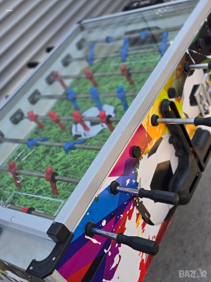 Нови модели 2026, имат LED светлини, електронен брояч на резултата, опция да се избере отбор, музика след всеки гол, закалено двойно предпазно стъкло