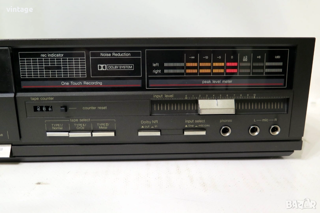 Двуглав стерео касетен дек, отличен технически, много добър външен вид. Плейва, превърта, записва нормално. Не е обслужван! Ръчен избор на типа лента, Dolby NR, светодиоден индикатор за изходните нива. Приложените снимки и видео са реални!