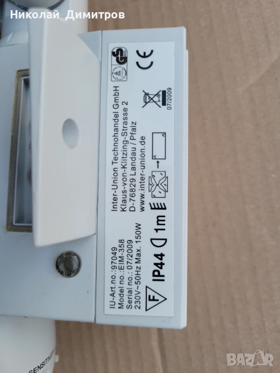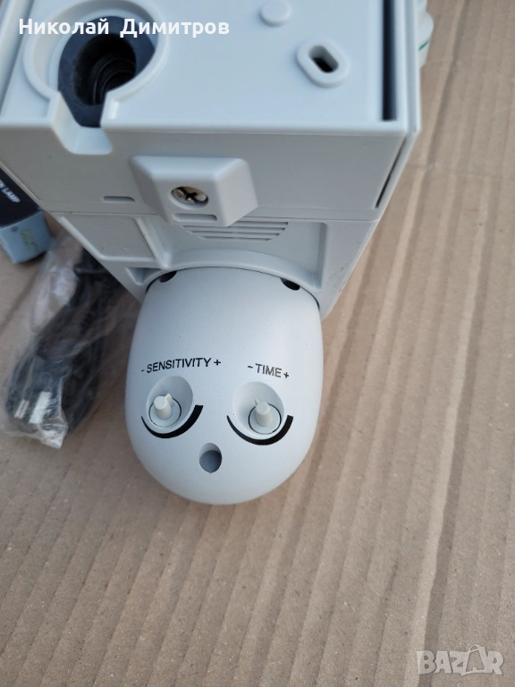 Регулиране: Възможност за настройка на времето на светене (от 40 сек. до 7 мин.) и чувствителността на сензора.