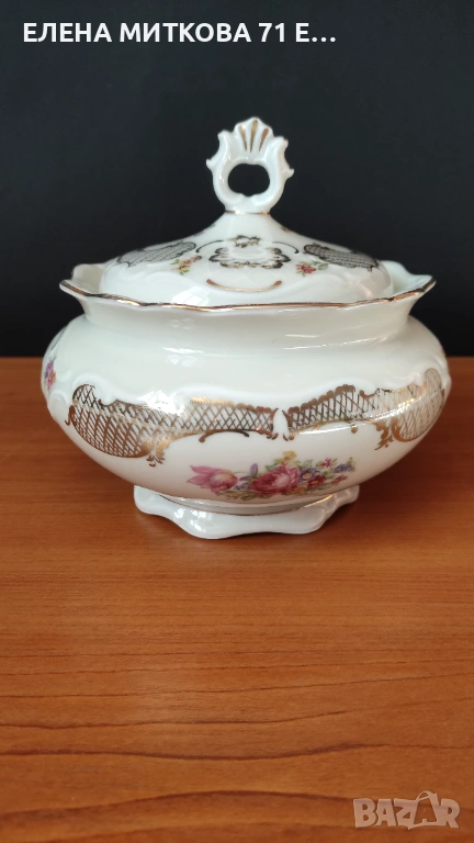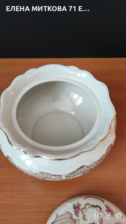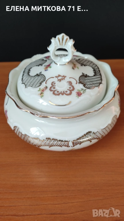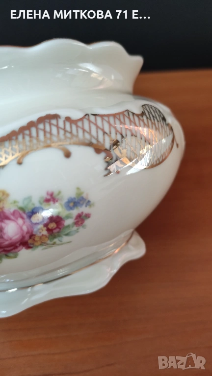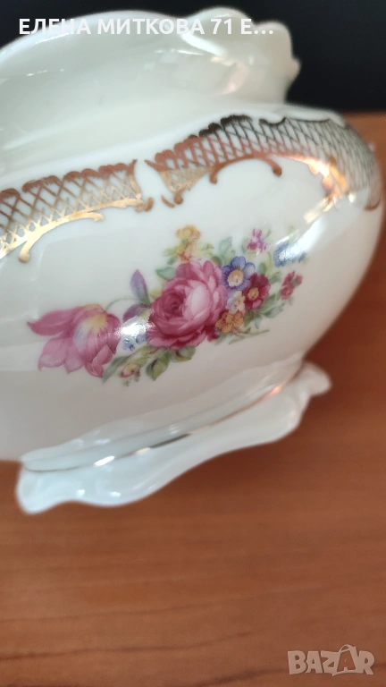 Едно чудесно изделие от фин порцелан с бароков релеф,флорален декор и много злато за разкош