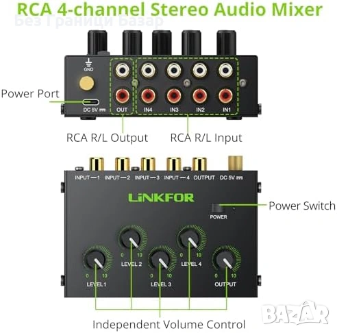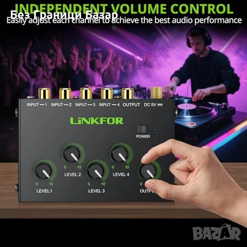 Нов Компактен 4-канален RCA миксер с усилване и контрол на звука за DJ и домашно кино