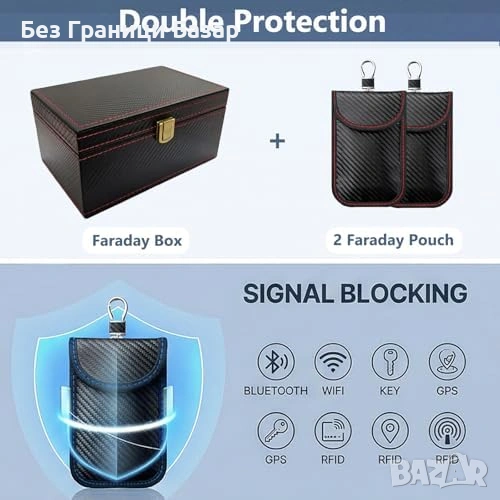 Нова RFID блокираща Faraday кутия за ключове кола с 2 калъфа блокер сигнал