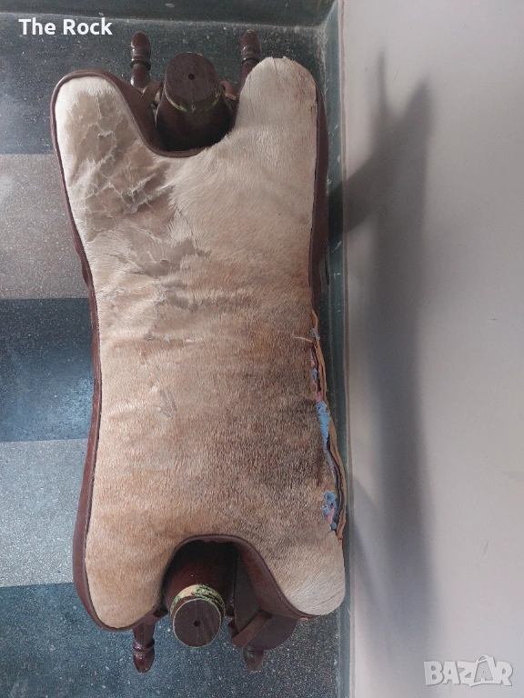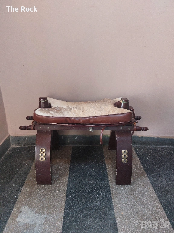Автентично дървено седло от камила с кожена възглавница. Има скъсана част която може да се зашие. Перфектен декоративен елемент може и да се ползва като табуретка.