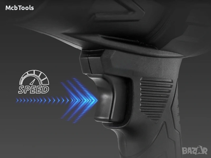 - Регулиране: Безстепенно управление на скоростта чрез спусъка.