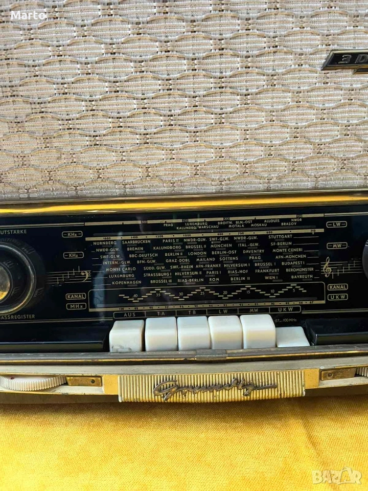 Лампово радио Grundig 2030 от 1952г, в отличен вид и напълно работещо. Само лично предаване.