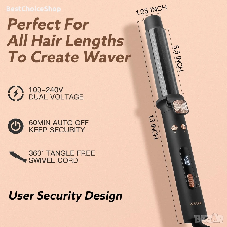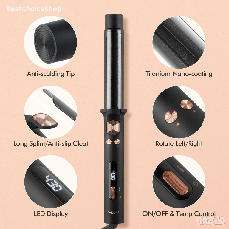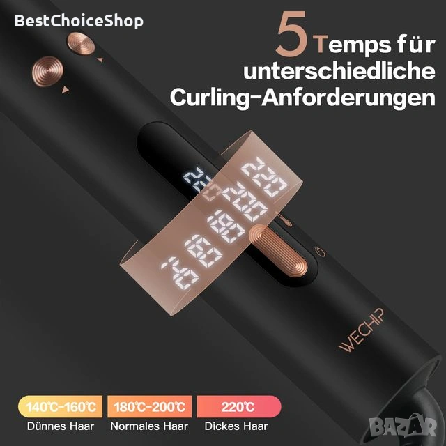 Въртяща се автоматична маша на 360°, WeChip с LED дисплей за къдрене