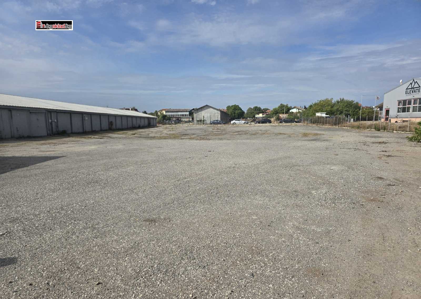 Открита площ: ~3 600 кв.м, оградена, с контрол на достъпа, видеонаблюдение и жива охрана; настилка предимно асфалт; собствен вход.