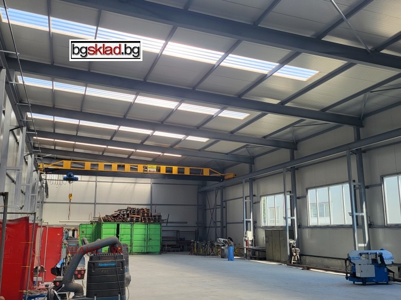 Самостоятелна новопостроена складова база под наем в ЗПЗ. Състои се от складово хале с площ 660м2 на шлайфан бетон, без вътрешни колони, с работна височина от 6.50м и монтиран нов релсов телферен кран с товароносимост до 3.2т с подемна височина до 5.00м над цялата работна площ. Базата разполага с трифазно електрозахранване с мощност до 50kW.