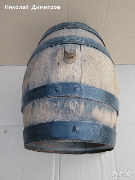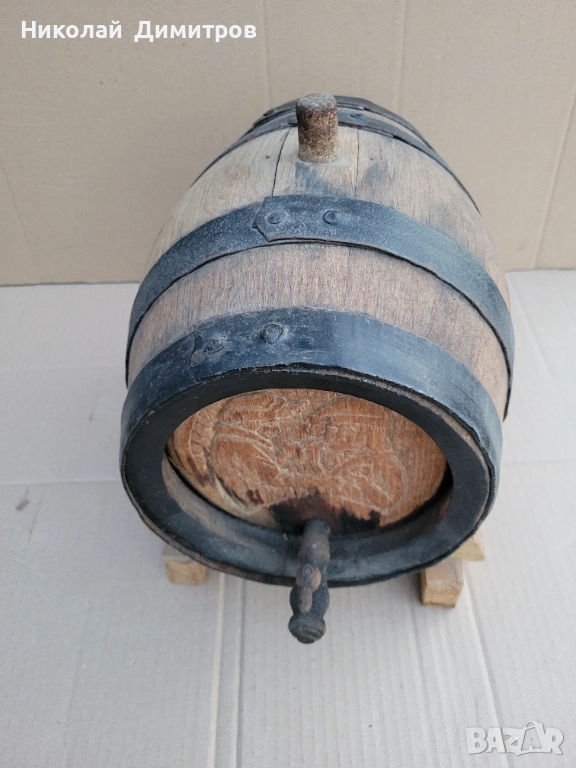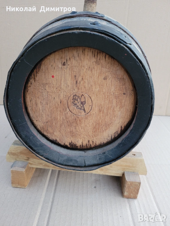 ​Състояние: Солидно дърво дъб, здрави метални обръчи, налично дървено кранче и стойка. Има маркировка на производителя на гърба.