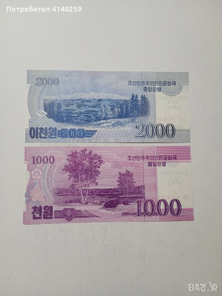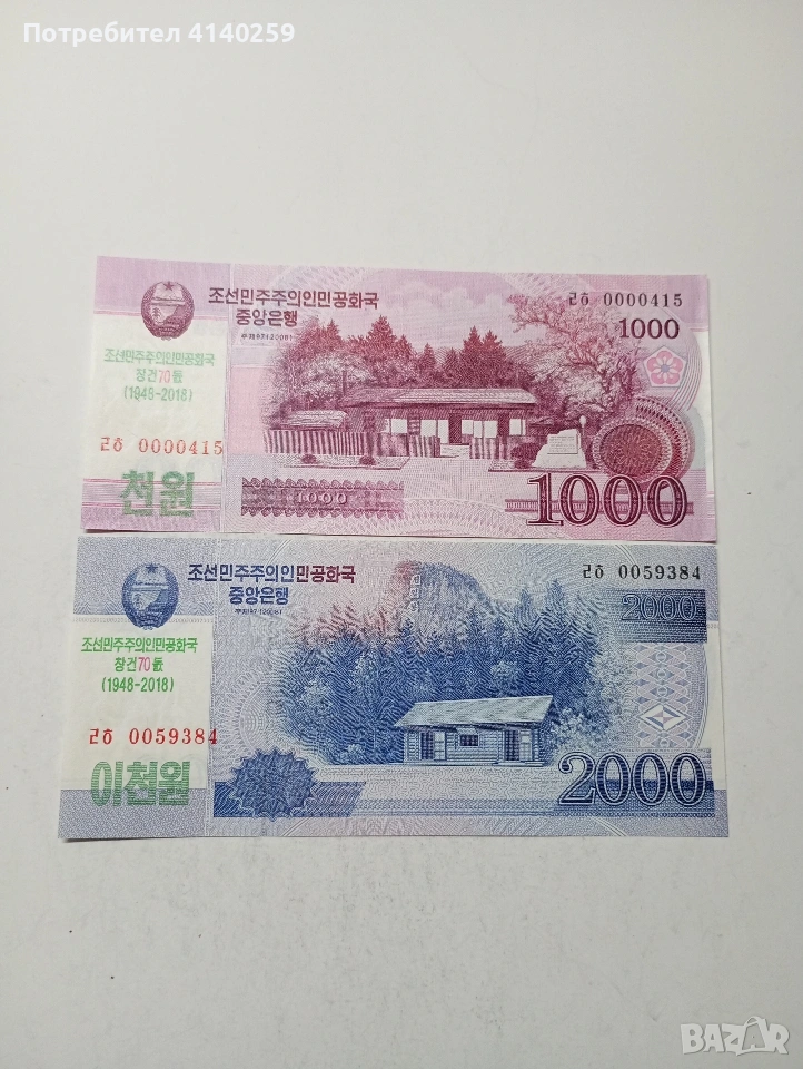 СЕВЕРНА КОРЕЯ БАНКНОТИ 2,000 ВОНА 2018 Г 1000 ВОНА 2018 Г ЦЕНА ЗА 2 БРОЯ СЪСТОЯНИЕ НОВО ПОЛУЧАВАТЕ СНИМАНИТЕ БАНКНОТИ РАЗГЛЕДАЙТЕ ДРУГИТЕ МИ ОБЯВИ ДА КОМБИНИРАТЕ ДОСТАВКА ЕКОНТ ЗА ВАРНА ЛИЧНО