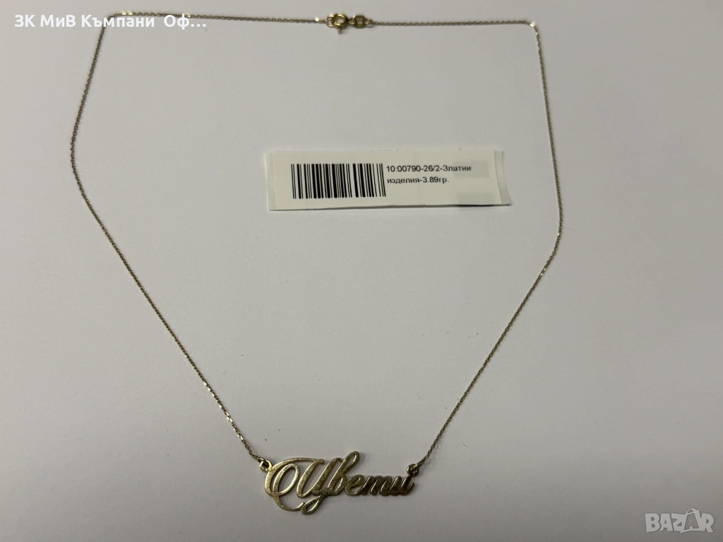 Златно колие с надпис "Цвети" - 3.89гр. - 14к.