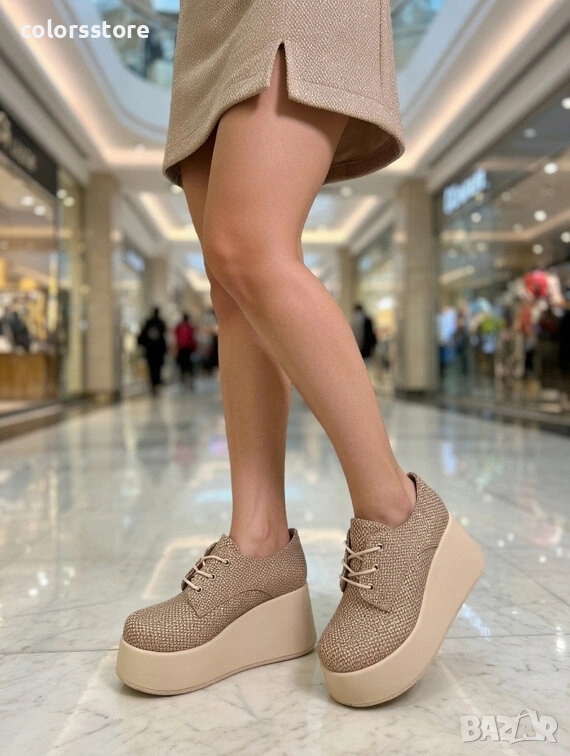 Обувки на платформа - бежови тип плетка - FG27 → Обява 54104620
