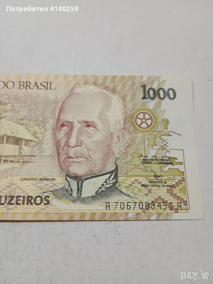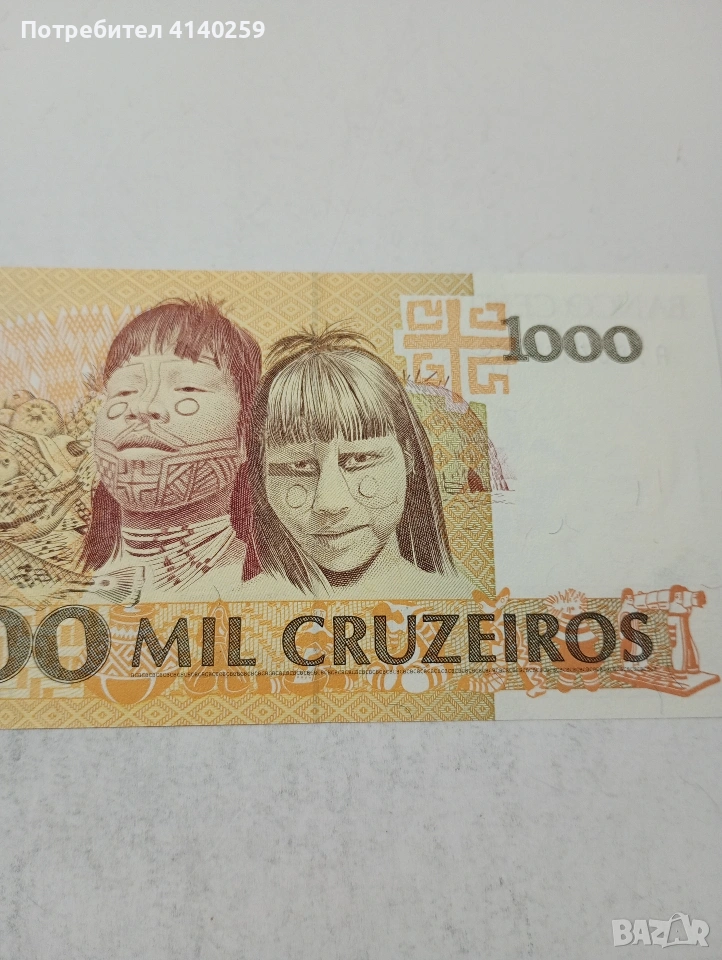 БРАЗИЛИЯ БАНКНОТА 1,000 КРУЗЕЙРО 1990-1993 Г СЪСТОЯНИЕ НОВО ПОЛУЧАВАТЕ СНИМАНАТА БАНКНОТА РАЗГЛЕДАЙТЕ ДРУГИТЕ МИ ОБЯВИ ДА КОМБИНИРАТЕ ДОСТАВКА ЕКОНТ ЗА ВАРНА ЛИЧНО