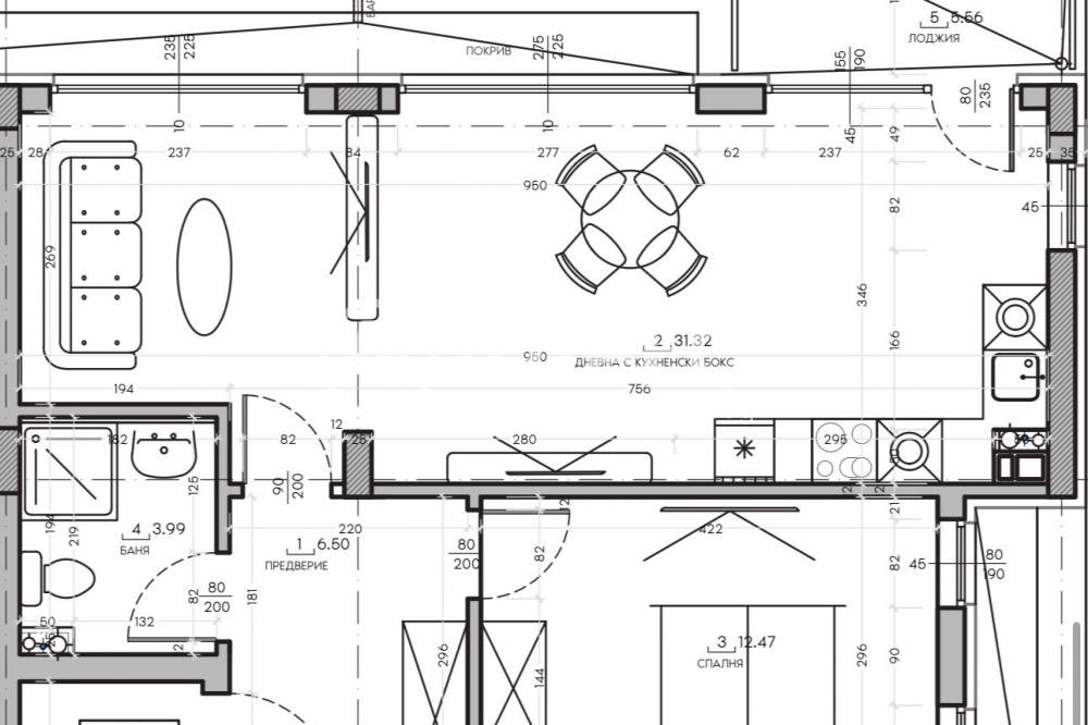 Двустаен апартамент 79кв.м., със следното разпределение: предверие,
