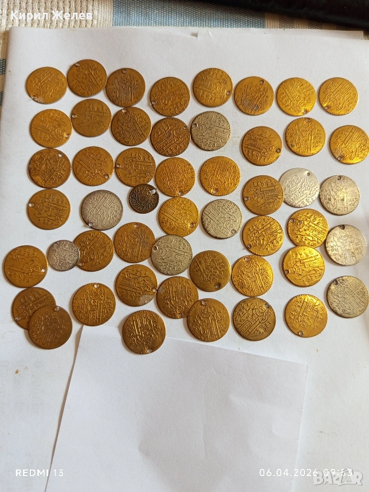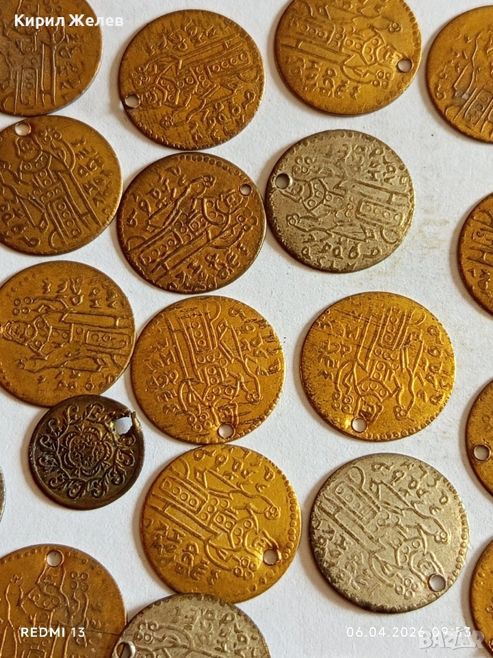 Лот 50 броя месингови пендара монети продупчени за НАКИТ, НОСИЯ, ЗАБРАДКА КОЛЕКЦИЯ 28406 → Обява 54104823